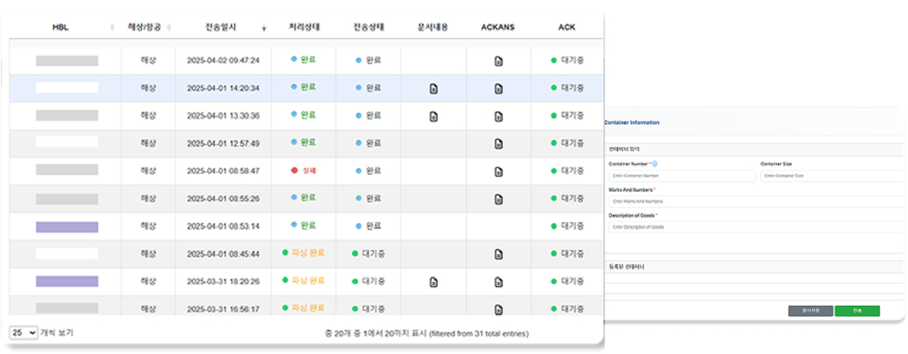 물류업체가 전송한 신고 데이터는 각국 세관 시스템과실시간으로 연동되어 오류 여부를 즉시 검증하고,자동으로 정상 처리됩니다.